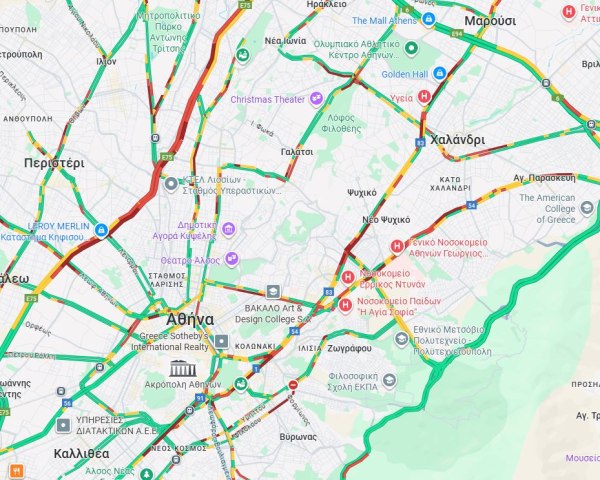 Με δυσκολίες και η Μεσογείων στο ρεύμα προς το κέντρο της Αθήνας, στον Καρέα προς Κατεχάκη, στην λεωφόρο Αθηνών προς Ασπρόπυργο
