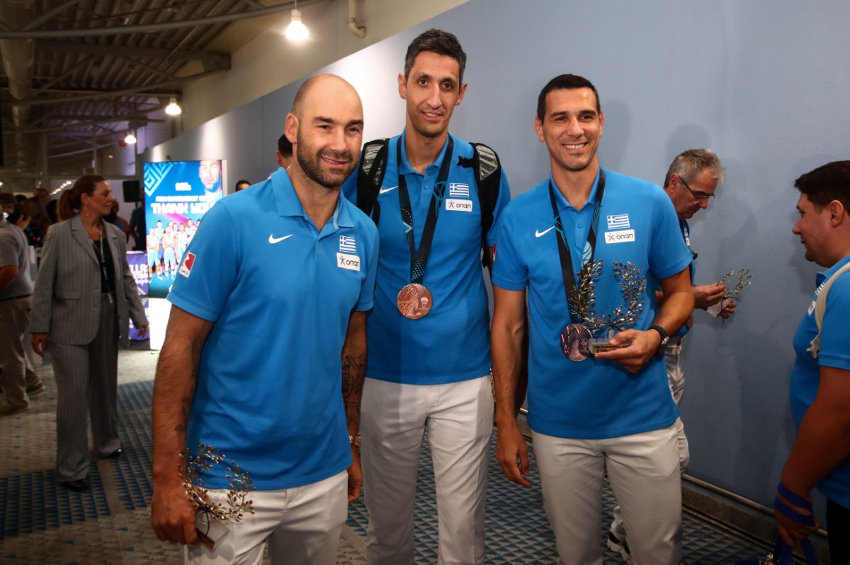 Τα μέλη της αποστολής παρέλαβαν τα δώρα και τις ανθοδέσμες τους, με τους ανθρώπους που επανέφεραν την χώρα μας στο βάθρο να τιμώνται. Το πιο εντυπωσιακό όμως είναι ότι στο αεροδρόμιο οι Έλληνες διεθνείς έφτασαν υπό τους ήχους του Final Countdown.