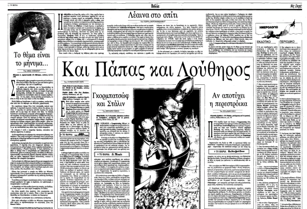 *Κείμενο της βιβλιοκριτικού και συγγραφέως Λίνας Λυχναρά, που έφερε τον τίτλο «Το θέμα είναι το μήνυμα…» και είχε δημοσιευτεί στην εφημερίδα «Το Βήμα» την Κυριακή 17 Φεβρουαρίου 1991.