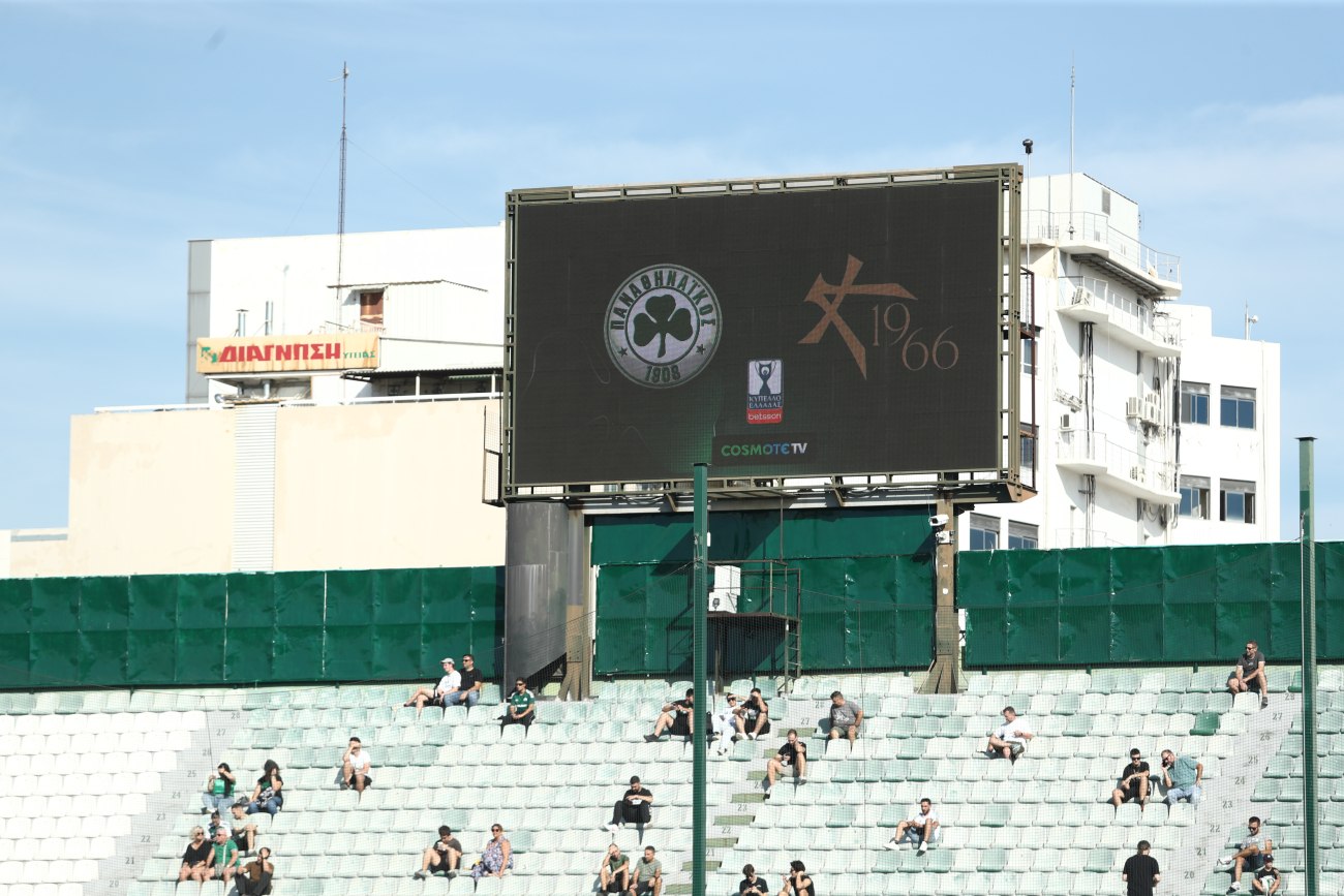Ο Παναθηναϊκός αντιμετωπίζει την Athens Kallithea στη Λεωφόρο για την 1η αγωνιστική της League Phase του Κυπέλλου Ελλάδας Betsson, με τους οπαδούς του Τριφυλλιού να γυρίζουν την πλάτη στην ομάδα, ενώ οι περίπου 1500 που βρίσκονται στο γήπεδο φωνάζουν συνθήματα κατά του ιδιοκτήτη της πράσινης ΠΑΕ, Γιάννη Αλαφούζο.
