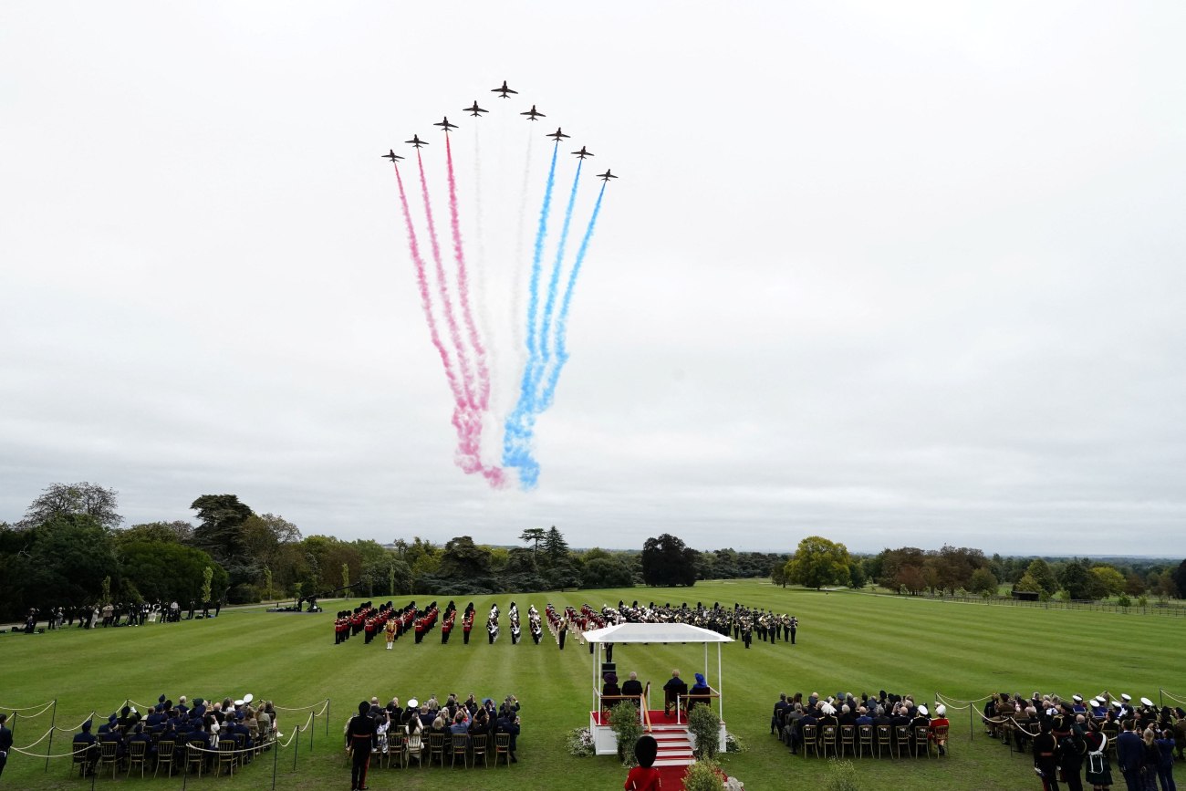 Όταν ξεκίνησε η πτήση των πολεμικών αεροσκαφών, τεσσάρων Red Arrows, δηλαδή F-35 Lightning, δύο βρετανικών και δύο αμερικανικών, ο ουρανός πλημμύρισε από χρώμα.