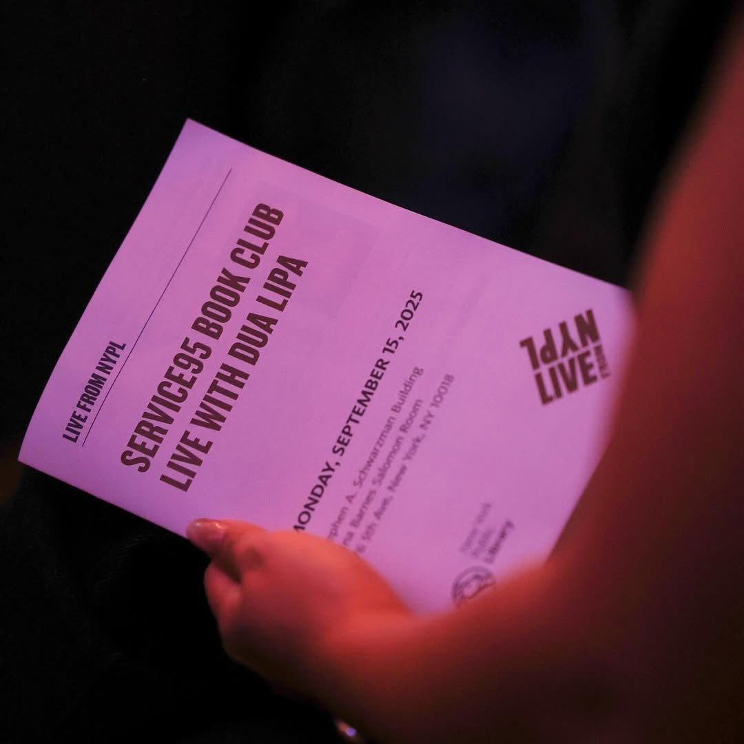 Η βασίλισσα της ποπ Ντούα Λίπα εμφανίστηκε σε μια ζωντανή ηχογράφηση του podcast της λέσχης βιβλίου που έχει δημιουργήσει, το Service95 Book Club, στη New York Public Library [Δημόσια Βιβλιοθήκη της Νέας Υόρκης] στις 15 Σεπτεμβρίου.