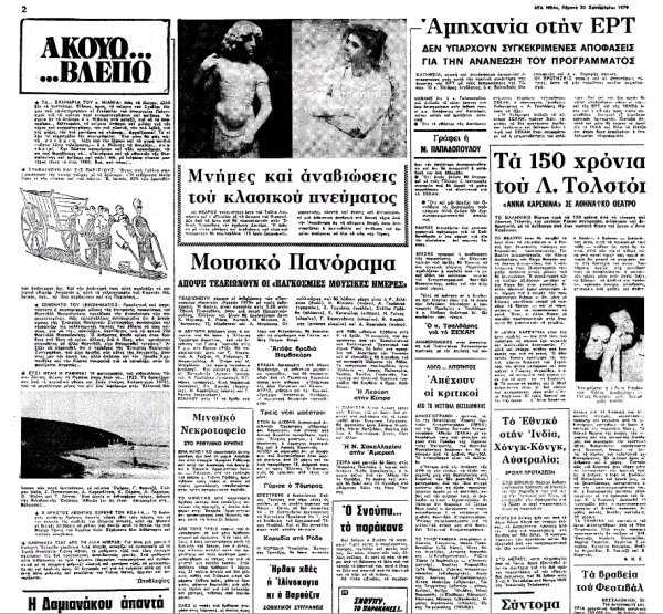 «ΤΑ ΝΕΑ», 20.9.1979, Ιστορικό Αρχείο «ΤΟ ΒΗΜΑ» & «ΤΑ ΝΕΑ»
