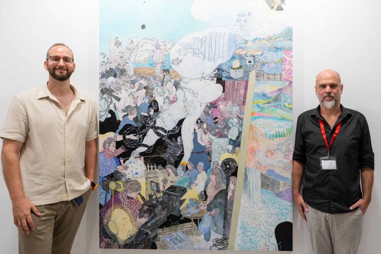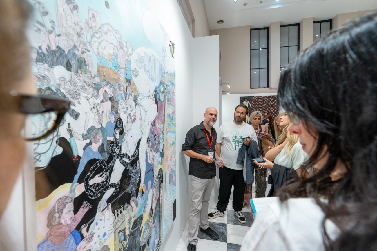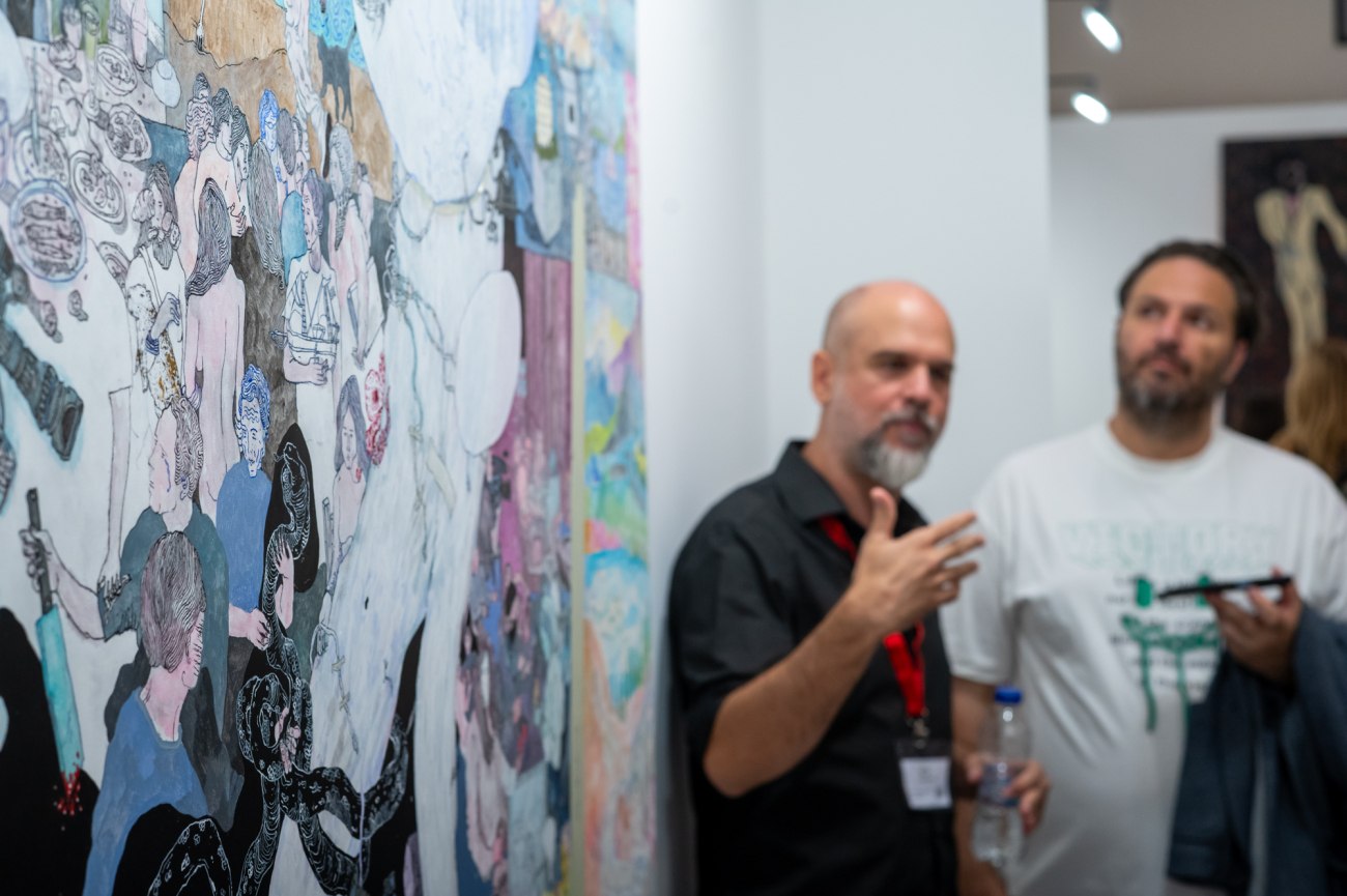 Ο Στέφανος Ρόκος, ο οποίος δημιούργησε δύο πρωτότυπα ζωγραφικά έργα για τη φετινή διοργάνωση, βρέθηκε την Παρασκευή 19 Σεπτεμβρίου στο περίπτερο R1 της Γκαλερί Ζουμπουλάκη παρουσιάζοντας στους δημοσιογράφους και στο κοινό τη νέα του δουλειά.