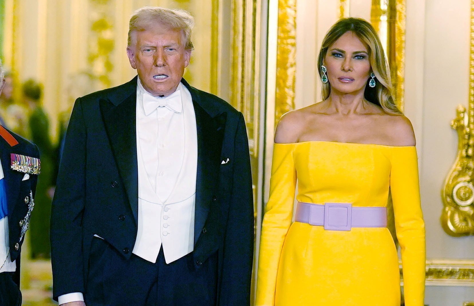 Η Πρώτη Κυρία φόρεσε ένα μακρύ φόρεμα σε έντονο καναρινί χρώμα, δημιουργία της Carolina Herrera, το οποίο συνδύασε με μια ζώνη στο χρώμα της λεβάντας. Το εφαρμοστό φόρεμα με γυμνούς ώμους τράβηξε την προσοχή, με ορισμένους όμως να θεωρούν ότι ξέφυγε από το αυστηρό βασιλικό πρωτόκολλο – αλλά όχι με τον τρόπο που θα υπέθετε κανείς.