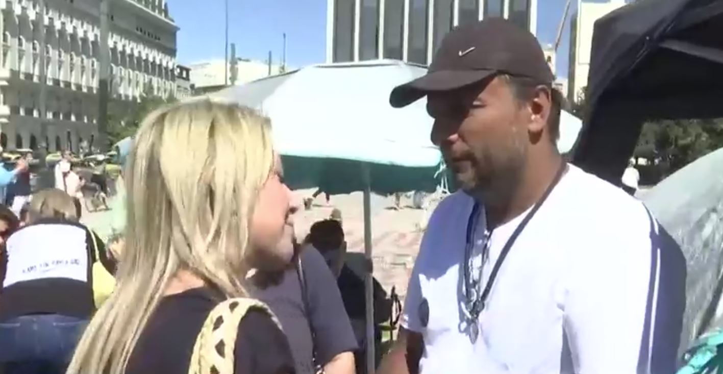 Ο Πάνο Ρούτσης σημειώνει μια εβδομάδα απεργίας πείνας έξω από το κτίριο της Βουλής.