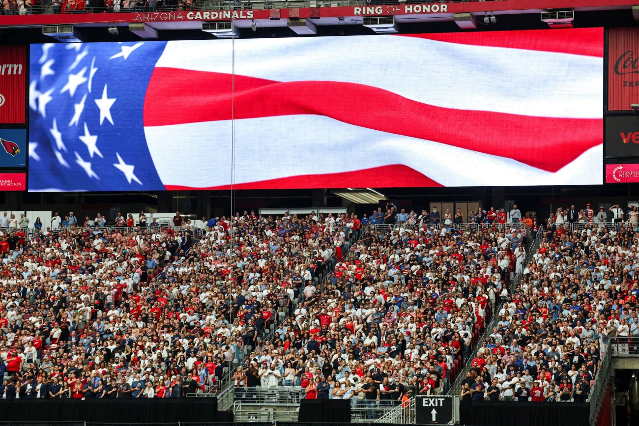 Ντυμένοι στα χρώματα της αμερικανικής σημαίας και με καπέλα MAGA προσήλθαν στο στάδιο State Farm υποστηρικτές του ακροδεξιού Τσάρλι Κερκ, προκειμένου να παρακολουθήσουν την κηδεία του.