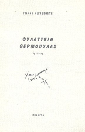 «Άδιον ουδέν έρωτος» (σ.σ. «Τίποτα πιο γλυκό απ’ τον έρωτα», στίχος προερχόμενος από ερωτικό επίγραμμα που έγραψε η Νοσσίς από τους Επιζεφυρίους Λοκρούς τον 4ο/αρχές 3ου αιώνα π.Χ.) και «Φυλάττειν Θερμοπύλας» τιτλοφορούνται οι τελευταίες συλλογές του Γιάννη Νεγρεπόντη. Στη, δίκην συμβολικών ρητών, γνωμική διατύπωση των τίτλων έχομε τις δυο όψεις της ποιητικής του ταυτότητας. Καταρχήν όψεις των διαφορετικών περιεχομένων και μολαταύτα ενιαίων, όχι δομήσεων, αλλά μορφοποιήσεων αυτών των περιεχομένων.