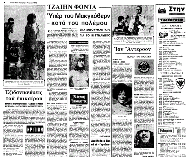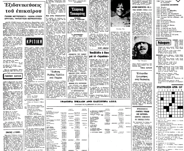 *Κριτικό κείμενο του Γιάννη Δάλλα, που έφερε τον τίτλο «Εξιδανικεύσεις του επικαίρου» και είχε δημοσιευτεί στην εφημερίδα «Το Βήμα» την Τετάρτη 5 Ιουλίου 1972.