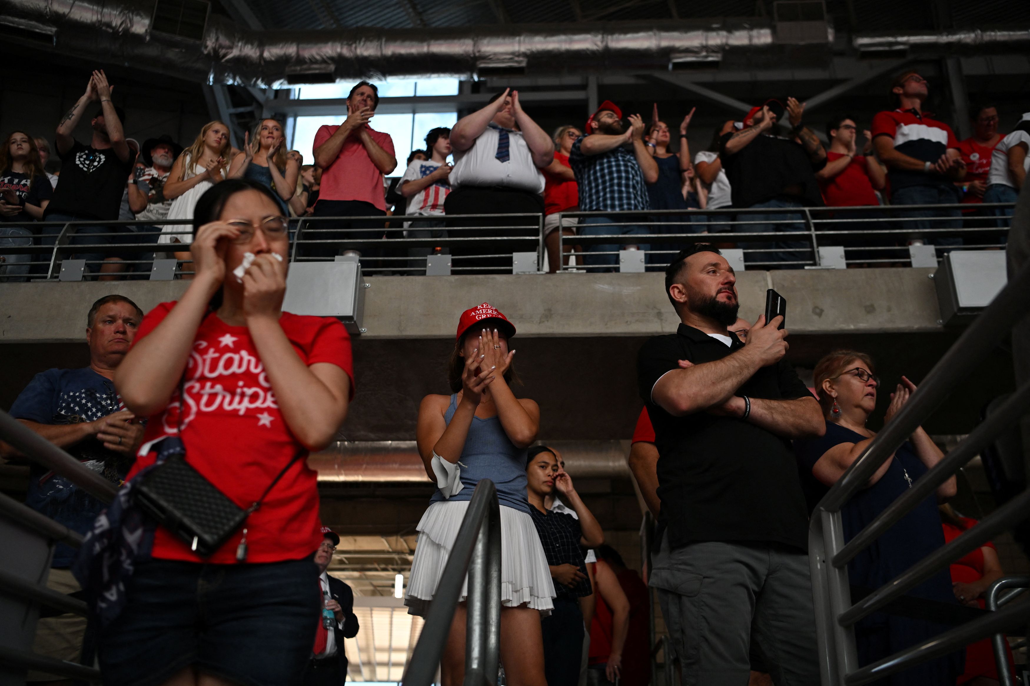 Άνθρωποι αντιδρούν κατά τη διάρκεια του μνημόσυνου για τον δολοφονημένο ακροδεξιό ακτιβιστή Τσάρλι Κερκ, στο στάδιο State Farm στο Γκλέντεϊλ της Αριζόνα, ΗΠΑ, 21 Σεπτεμβρίου 2025. REUTERS/Callaghan O’Hare
