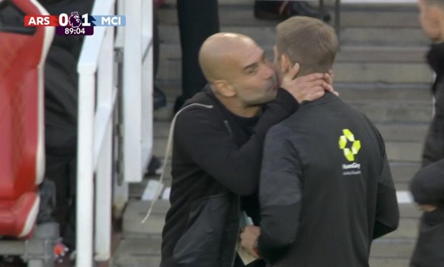 Στη συνέχεια αφού ηρέμησε και οι… παλμοί έπεσαν του έδωσε ένα φιλί στο μάγουλο, αφήνοντάς τον άναυδο. Απίθανη αντίδραση από τον Πεπ που αποδεικνύει ακόμα μία φορά πόσο τρομερός τύπος είναι, καθώς αφού του είπε όσα παράπονα είχε μέσα στο παιχνίδι μετά άμεσα έριξε τους τόνους.