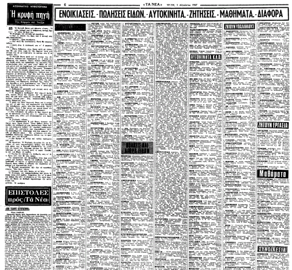 «ΤΑ ΝΕΑ», 1.8.1967, Ιστορικό Αρχείο «ΤΟ ΒΗΜΑ» & «ΤΑ ΝΕΑ»