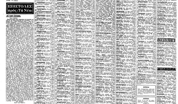 Παρακαλώ θερμώς όπως δημοσιεύσητε την επιστολήν μου αυτήν εις την οποίαν διευκρινίζω μίαν ανακρίβειαν. Ο συνεργάτης σας κ. Ψαθάς χρησιμοποιεί συχνά —δίδων λανθασμένας πληροφορίας— το τραγικόν επιτύμβιον του τάφου του λατρευτού μου συζύγου: «Επιτέλους εστεγάσθην».