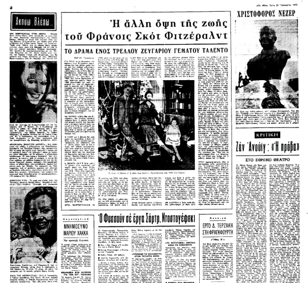 *Άρθρο αφιερωμένο στη μνήμη του Σκοτ και της Ζέλντα Φιτζέραλντ, που είχε δημοσιευτεί στην εφημερίδα «Τα Νέα» την Τρίτη 23 Ιανουαρίου 1973.