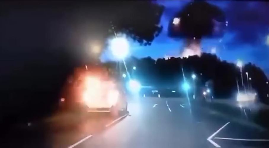 Βίντεο που τράβηξε επιβάτης διερχόμενου αυτοκινήτου δείχνει τη δραματική στιγμή που η έκρηξη έστειλε μια τεράστια πύρινη σφαίρα στον αέρα. Μια λάμψη έντονου φωτός διακρίνεται στις εικόνες και μια μπάλα από φλόγες εκτοξεύεται στον ουρανό. Τεράστιες, πυκνές στήλες καπνού φάνηκαν στη συνέχεια να υψώνονται στον αέρα.