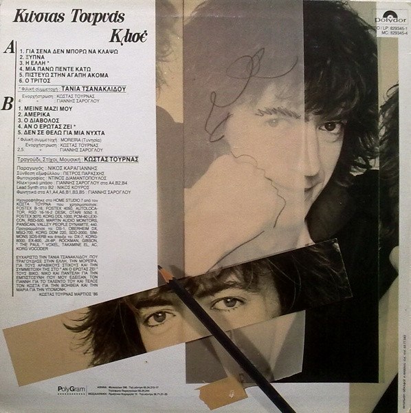 Το οπισθόφυλλο του «Κλισέ» (1986). Κάτω αριστερά γράφει: «Ηχογραφήθηκε Στο Home Studio 7 Απο Τον Κώστα Τουρνά Που Χρησιμοποίησε: FOSTEX B-16, FOSTEX 4050, AUTOLOCATOR, RSD 16-16-2 DESK, OTARI 5050 II, FOSTEX 3070, KORG DDL 1000, PCM 60 LEXICON, RSD 500, MARTIN AUDIO MONITORS, PANSCAN, VALLEY PEOPLE DYNAMITE, 400. Προγραμμάτισε Τα: DS -1, OBERHEIM DX, MSQ – 700, KORG DDM 220, SDD 2000, SIMMONS SDS-ERB & Έπαιξε Τα: DX-7, KORG-8000, EX 800, JX-8P, ROCKMAN, GIBSON, »THE PAUL» VOXEL, TAKAMINE EL, AC, KORG VOCODER.» (Πηγή: Discogs)