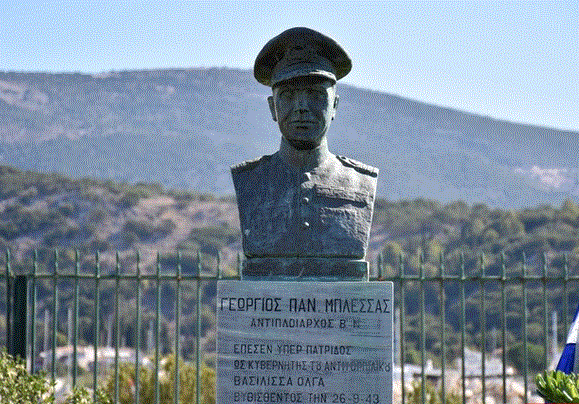 Προτομή του αντιπλοιάρχου Γεωργίου Μπλέσσα βρίσκεται τοποθετημένη στο λιμένα της γενέτειράς του, μπροστά στο Λιμεναρχείο.