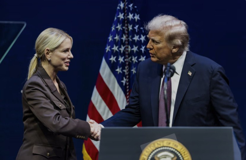 Ο Ντόναλντ Τραμπ χαιρέτισε την απαγγελία κατηγοριών σε βάρος του πρώην διευθυντή του FBI Τζέιμς Κόμι, την ποινική δίωξη του οποίου επιζητούσε επί χρόνια ο ρεπουμπλικάνος πρόεδρος των ΗΠΑ (στη φωτογραφία αρχείου του Reuters/Nathan Howard, επάνω, ο Τραμπ με την υπουργό Δικαιοσύνης Παμ Μπόντι).