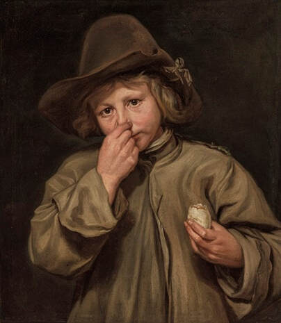 Η «Όσφρηση», αντί να απεικονίζει μια γυναίκα που μυρίζει ένα λουλούδι, απεικονίζει ένα αγόρι με ένα σάπιο αυγό
