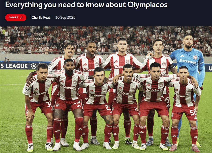 Πρόκειται για την αναφορά που δημοσιεύθηκε ενόψει της αυριανής (1/10, 22:00) αναμέτρησης στο Emirates Stadium, ώστε οι φίλοι της Άρσεναλ να γνωρίζουν όλα όσα χρειάζονται για τον ιστορικό αντίπαλο από την Ελλάδα.