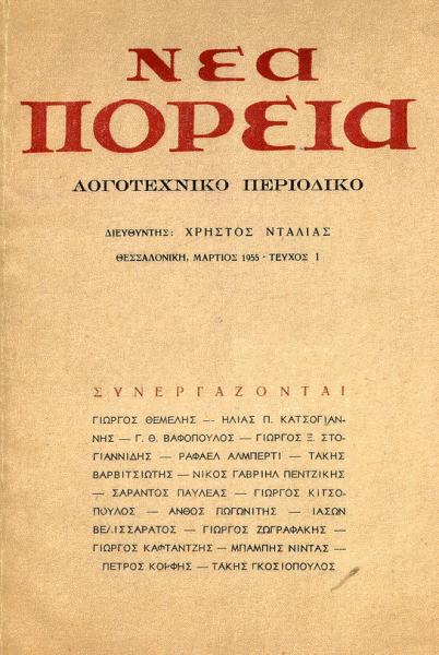 Το 1955 ο Αλαβέρας εξέδωσε (με τη συνδρομή του Χρήστου Ντάλια) το λογοτεχνικό περιοδικό «Νέα Πορεία», που εξελίχθηκε —εκ παραλλήλου με τη συγγραφική του δραστηριότητα— σε έργο ζωής, με υπεύθυνο έκδοσης τον ίδιον έως το τέλος του βίου του.