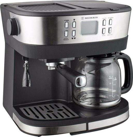 Η πολυκαφετιέρα Morris 2 σε 1 σου χαρίζει την δυνατότητα ταυτόχρονης προετοιμασίας καφέ φίλτρου και εσπρέσο! Διαθέτει 2 δοχεία νερού και υψηλής απόδοσης ισχύ 2015 Watt για να ζεσταίνεται το νερό ακόμα πιο γρήγορα. Η πίεση 20bar προσφέρει εξαιρετικής ποιότητας καφέ, εκχυλίζοντας άψογα τα μοναδικά αρώματα της κάθε ποικιλίας.