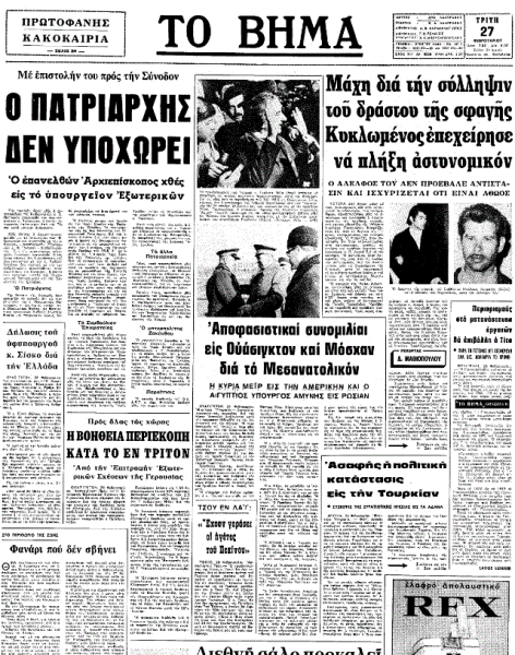Με πονηρίες μπερτοδουλικές (σ.σ. που εξυπηρετούν δόλιους σκοπούς) την εκπόρθηση του οχυρού είχε επιχειρήσει η ηγεσία του ρασοφόρου ελλαδισμού, οπότε ο Αθηναγόρας, με το έγγραφό του της 27 Φεβρουαρίου 1969, θεώρησε κάθε ανάμιξη απαράδεκτη. Μια ανάμιξη που θα τίναζε στον αέρα όλη την οικοδομή.
