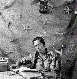 Αλήθεια πώς ανθίζουν τα ποιήματα τη νύχτα! Εξάλλου τα ελληνικά τα έμαθα από τους ποιητές και τα ποιήματα. Να μην ξεχάσω και την παιδευτική της ασχολία στη σχολή Βακαλό και τι πρόσφερε η σχολή στις εφαρμοσμένες τέχνες στη χώρα. Η παρουσία της, σεμνή, ωραία και συνταιριασμένη με τον κότσο της —που, όπως μου λένε, παλαιότερα ήταν κοτσίδα—, έχει κάτι από αμαζόνα, αλλά αυτό δεν είναι υπεροψία, είναι κατανόηση και αγάπη. Ξέρει τι κάνει και αυτό προσδίδει μία στερεότητα. Το τσιγάρο δεν λείπει ποτέ από τα δάχτυλα και μία ελληνική μελαχρινάδα την τυλίγει και ουσιαστικά τη φωτίζει.