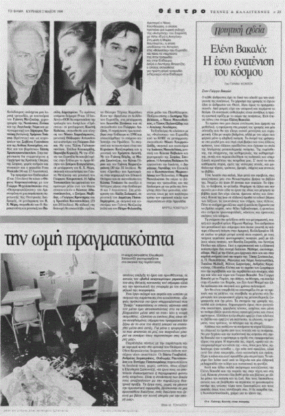Τον Γιώργο και την Ελένη Βακαλό είχε τιμήσει με ένα πολύ ενδιαφέρον κείμενό του, που είχε δημοσιευτεί στην εφημερίδα «Το Βήμα» (Κυριακή 2 Μαΐου 1999), ο ποιητής Γιάννης Κοντός (1943-2015).