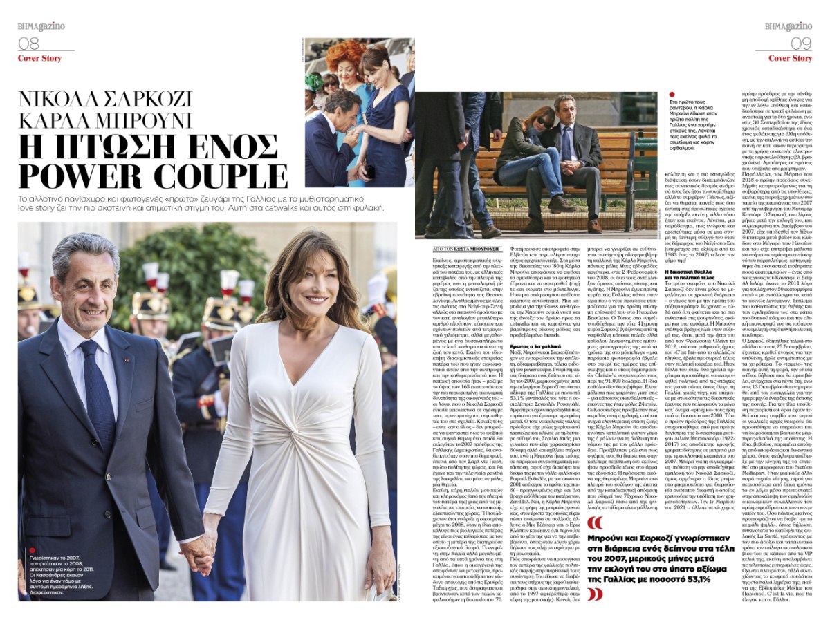 Αυτή την Κυριακή 5 Οκτωβρίου, το νέο τεύχος του περιοδικού BHMAGAZINO, που κυκλοφορεί όπως πάντα μαζί με TO BHMA, έρχεται γεμάτο συναρπαστικές ιστορίες, πρόσωπα και εικόνες που συνομιλούν με την επικαιρότητα και τον κόσμο γύρω μας. Στο εξώφυλλο, το πολυσυζητημένο ζευγάρι Νικολά Σαρκοζί – Κάρλα Μπρούνι.