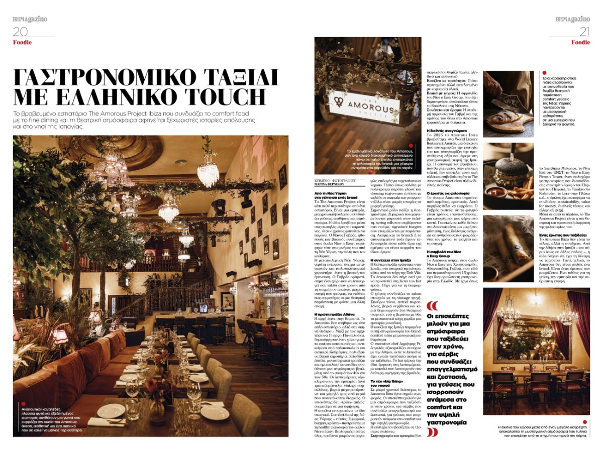 Στις σελίδες του τεύχους, οι αναγνώστες θα ταξιδέψουν από την Ισπανία ως την Τανζανία. Το βραβευμένο Project Ibiza επαναπροσδιορίζει τη γαστρονομική εμπειρία, συνδυάζοντας το comfort food με fine dining σε μια θεατρική ατμόσφαιρα που εντυπωσιάζει.