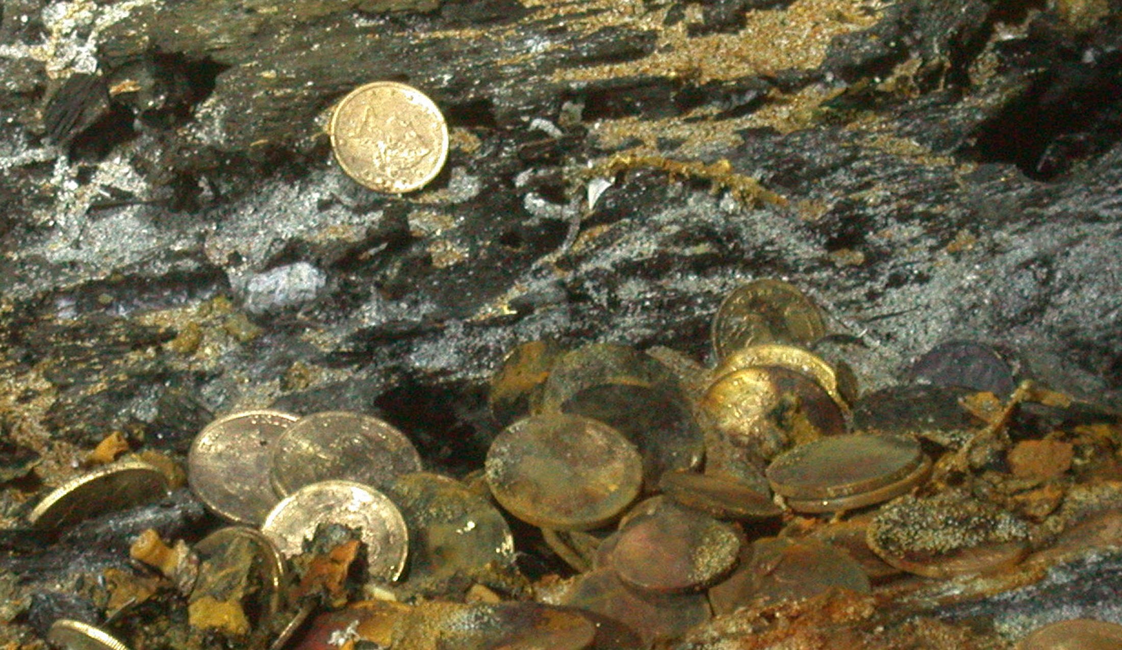 Οι δύτες εκτιμούν πως τα νομίσματα φυλάσσονταν αρχικά σε ένα κιβώτιο που διαλύθηκε στη θύελλα. Κάποια φέρουν ακόμη ίχνη από λινάτσα, ένδειξη ότι ενδέχεται να υπάρχουν κι άλλα διασκορπισμένα στον βυθό.