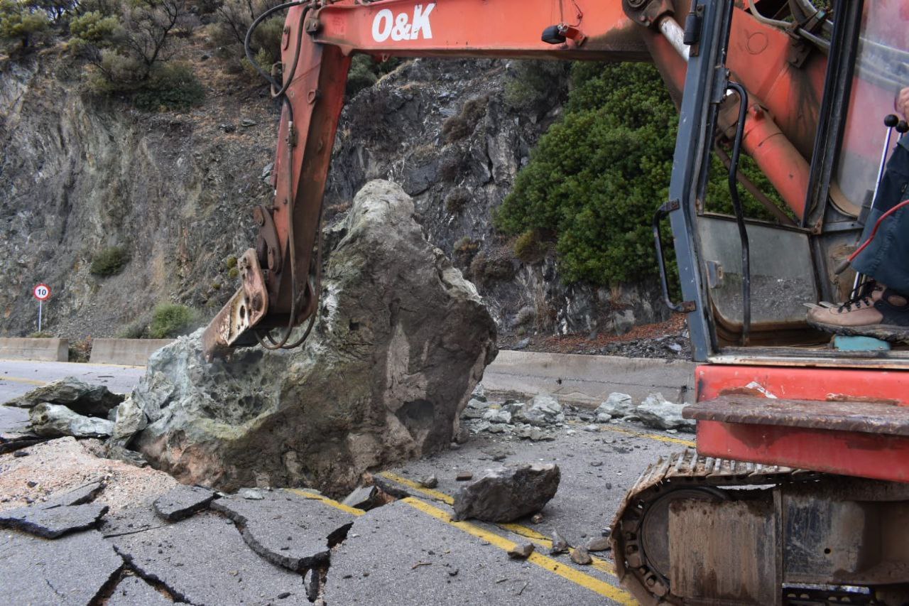 Η διαδικασία της απομάκρυνσης του τεράστιου βράχου έχουν ήδη ξεκινήσει, με τα μηχανήματα της Περιφέρειας να τον θρυμματίζουν έτσι ώστε να γίνει εφικτό να μετακινηθούν τα κομμάτια του.