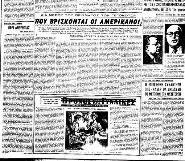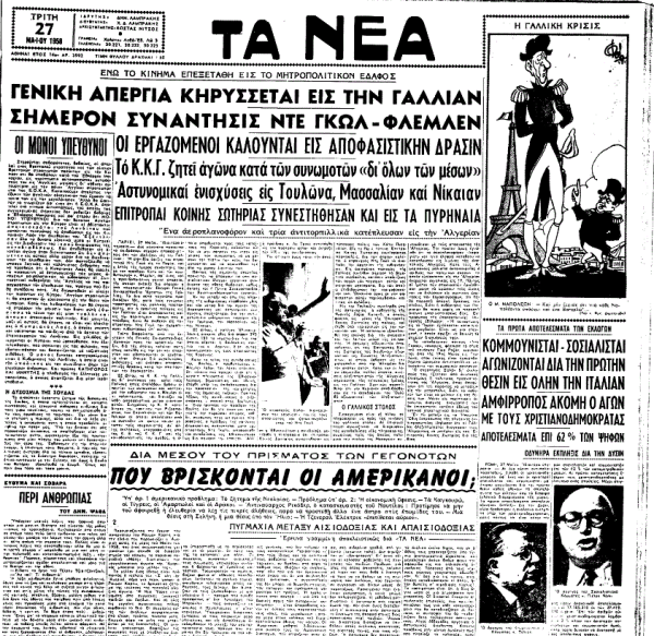 «ΤΑ ΝΕΑ», 27.5.1958, Ιστορικό Αρχείο «ΤΟ ΒΗΜΑ» & «ΤΑ ΝΕΑ»