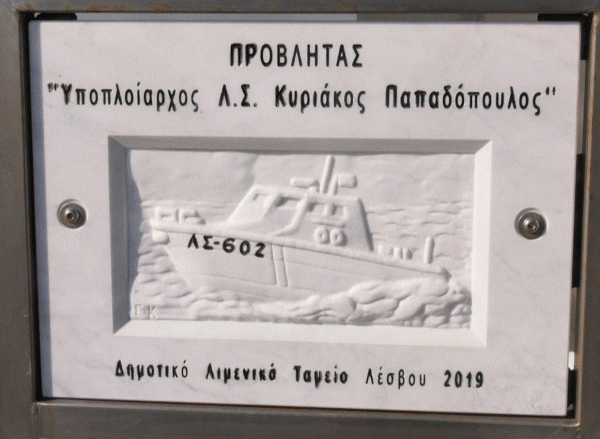 Το παρόν άρθρο είναι αφιερωμένο στη μνήμη του υποπλοιάρχου του Λιμενικού Σώματος – Ελληνικής Ακτοφυλακής Κυριάκου Παπαδόπουλου, ο οποίος έφυγε από τη ζωή στις 9 Οκτωβρίου 2018.