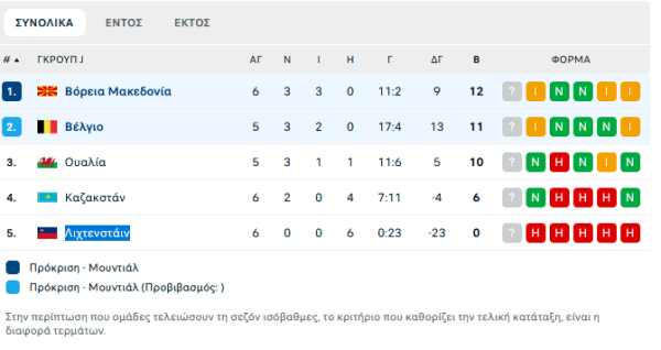 Στον δέκατο όμιλο ισόπαλο χωρίς γκολ (0-0) έληξε το ντέρμπι κορυφής ανάμεσα σε Βέλγιο και Β. Μακεδονία για την έκτη αγωνιστική του γκρουπ. Οι φιλοξενούμενοι παρέμειναν έτσι στην κορυφή με έναν βαθμό διαφορά από τους γηπεδούχους που έχουν όμως ματς λιγότερο.