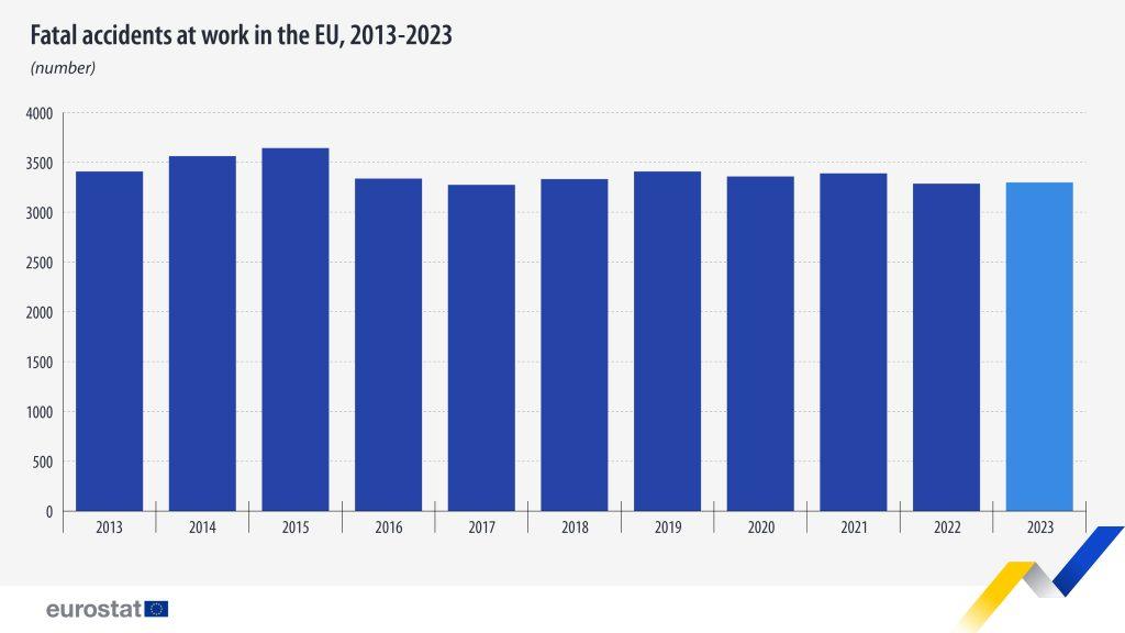 Ο αριθμός των θανατηφόρων εργατικών ατυχημάτων ήταν 3.298, αντιπροσωπεύοντας το 0,1% όλων των ατυχημάτων, δηλαδή στην ΕΕ μετρούσαμε 9 νεκρούς εργάτες κάθε μέρα.