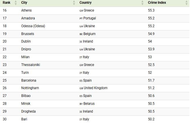 Δείτε την λίστα με τις 30 πιο επικίνδυνες πόλεις της Ευρώπης: