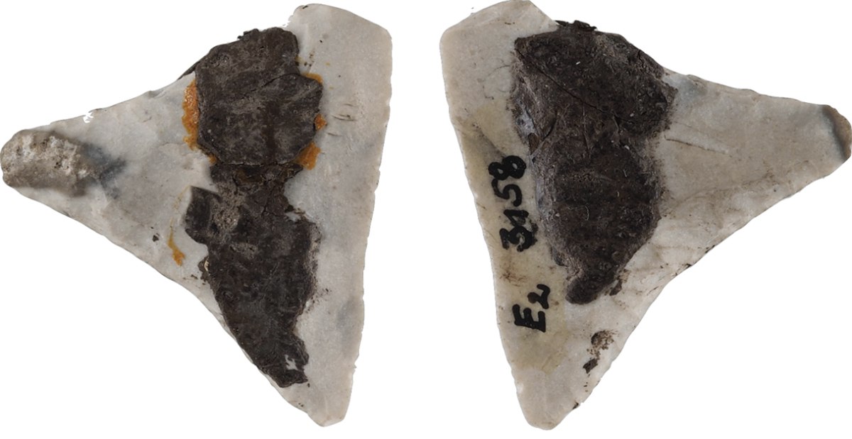 Υπολείμματα ρητίνης σε λίθινες αιχμές που είχαν στερεωθεί σε ξύλινες λαβές (Theis Trolle Jensen/University of Copenhagen Globe Institute)