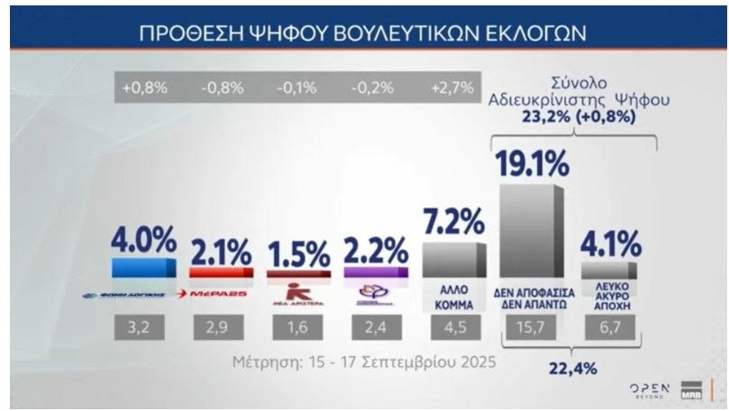 Ένα ποσοστό 15,5 % απαντά «δεν ξέρω/δεν απαντώ».