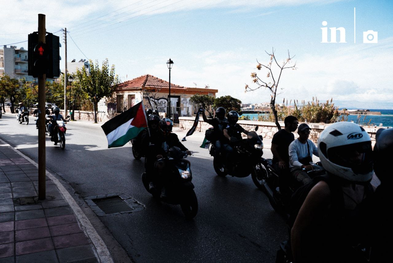 Το in στη μαζική κινητοποίηση υπέρ της Παλαιστίνης στην Κρήτη – Πορεία προς τη βάση της Σούδας