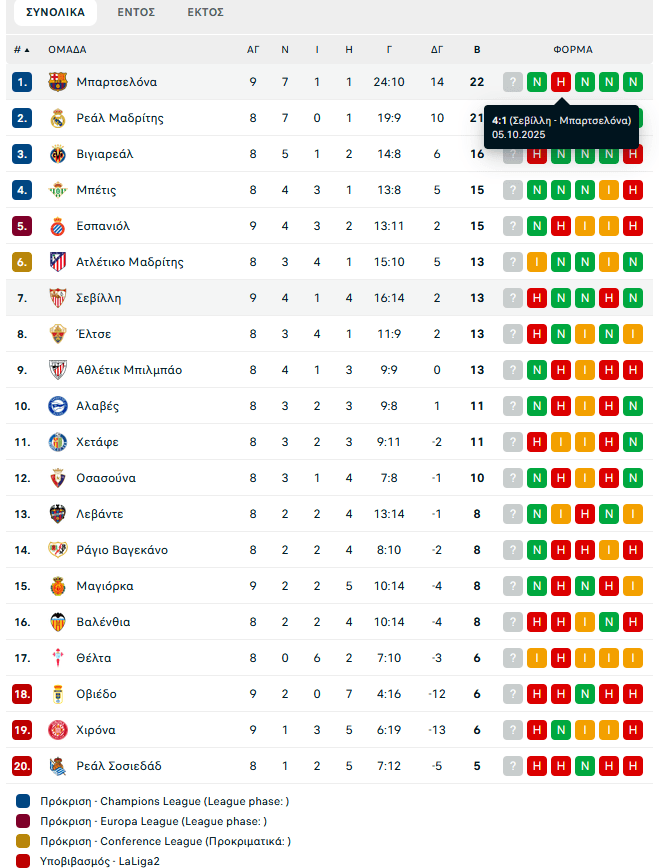 Τα αποτελέσματα και το υπόλοιπο πρόγραμμα της 9ης αγωνιστικής της La Liga