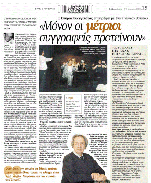 *Άρθρο με την υπογραφή του θεατρικού συντάκτη (δημοσιογράφου πολιτιστικού ρεπορτάζ) Γιώργου Δ. Κ. Σαρηγιάννη, που έφερε τον τίτλο «Μόνον οι μέτριοι συγγραφείς προτείνουν» και είχε δημοσιευτεί στην εφημερίδα «Τα Νέα» το Σαββατοκύριακο 14-15 Ιανουαρίου 2006.