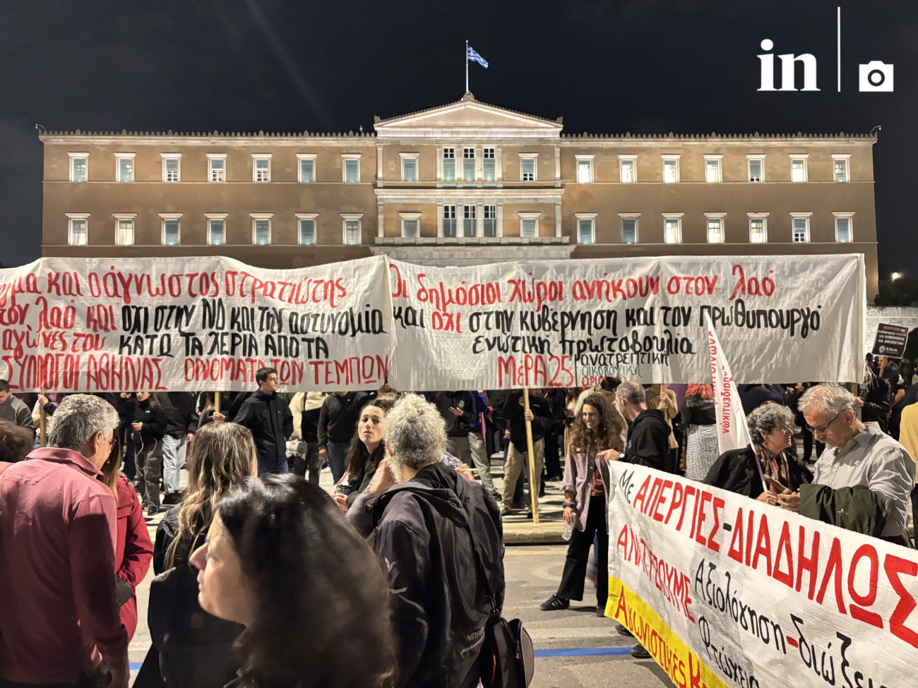 «Ραντεβού στο Κοινοβούλιο για την αντίκρουση της κυβερνητικής τροπολογίας περί απαγόρευσης των πάσης φύσεως δημόσιων συναθροίσεων στην πλατεία Συντάγματος δίνουν σήμερα τα κόμματα της αντιπολίτευσης» ανέφερε το κάλεσμα της διαδικτυακής ομάδας «Μέχρι Τέλους».