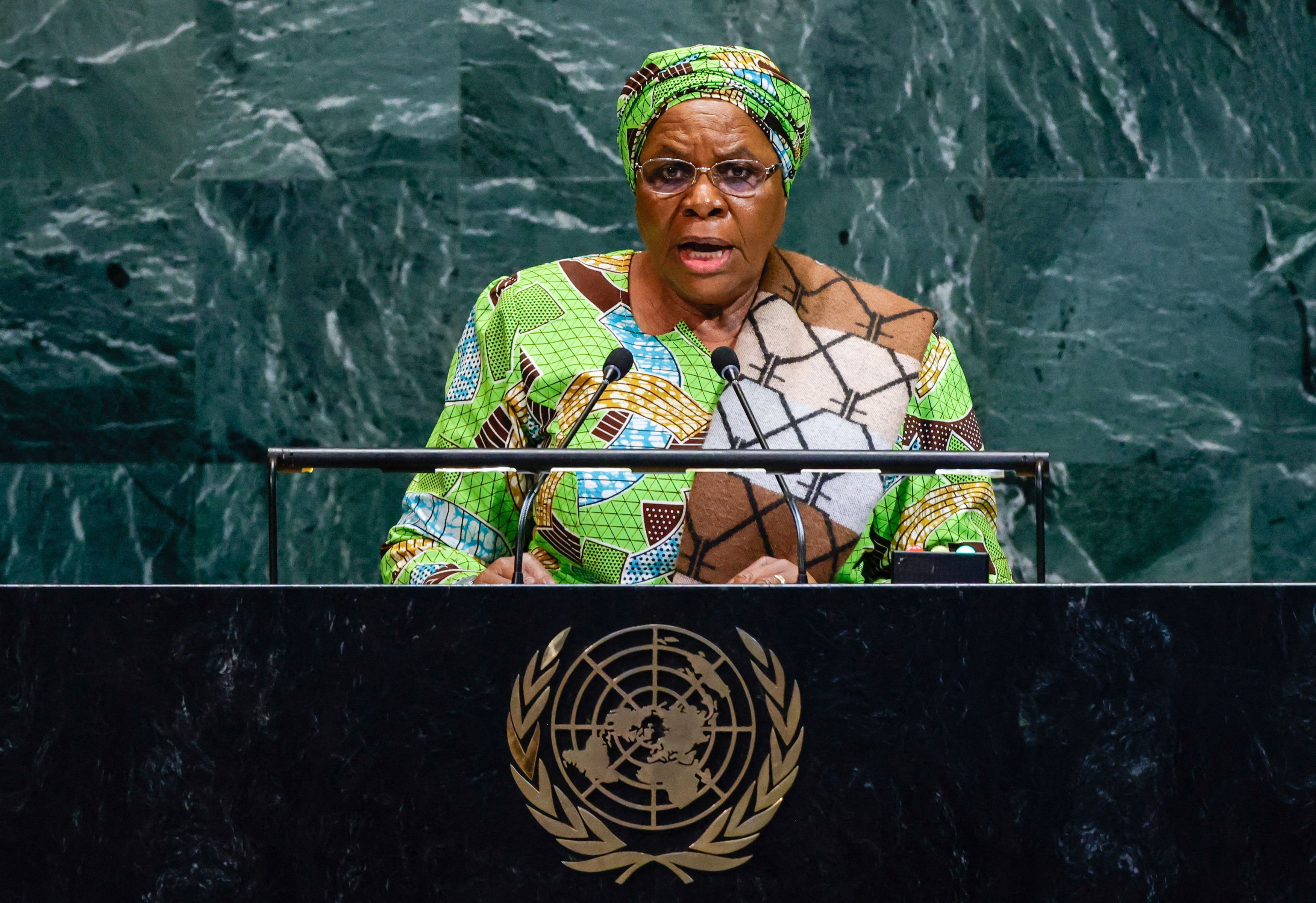 Η πρόεδρος της Ναμίμπια, Νετούμπο Νάντι-Ννταϊτβά, μιλά κατά τη διάρκεια συνεδρίασης υψηλού επιπέδου της Γενικής Συνέλευσης των Ηνωμένων Εθνών για την τριακοστή επέτειο της Τέταρτης Παγκόσμιας Διάσκεψης για τις Γυναίκες, στην έδρα του ΟΗΕ, στη Νέα Υόρκη, ΗΠΑ, στις 22 Σεπτεμβρίου 2025. Φωτογραφία: REUTERS/Eduardo Munoz