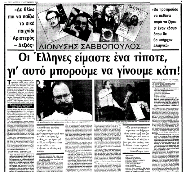 Ο Γιώργος Πηλιχός ερωτά, ο Διονύσης Σαββόπουλος απαντά. Πριν από 42 ολόκληρα χρόνια, το Σεπτέμβριο του 1983 (εφημερίδα «Τα Νέα», Σάββατο 17 Σεπτεμβρίου 1983).