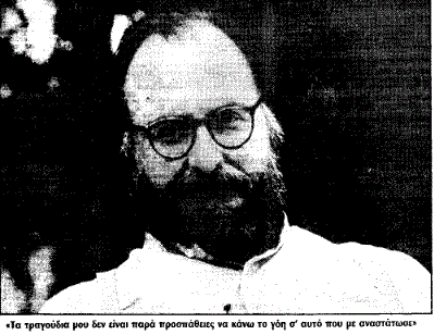Κοιτάξτε, εγώ δεν ξέρω να γράφω ούτε τσάμικα ούτε καλαματιανά ούτε τσιφτετέλια. Κατά βάθος δεν ξέρω να γράφω τίποτε. Έπρεπε όμως κάπως να εκφράσω τη συνάντησή μου με τους παλιούς ρυθμούς, μ’ αυτό που λέμε κοινή εμπειρία. Νομίζω πως ξαναγυρνώ σ’ αυτήν. Με τον τρόπο μου φυσικά, αλλιώς δεν θάταν συνάντηση. Χρειάστηκε κάποτε ν’ απομακρυνθώ τόσο πολύ απ’ αυτήν, ώστε τώρα μπορώ να τη συναντώ χωρίς να τη φοβάμαι πια.
