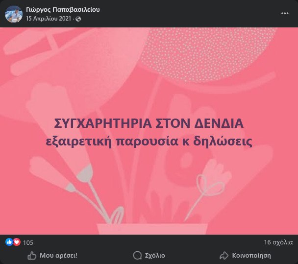 Αλγεινή εντύπωση και αντιδράσεις στο πράσινο στρατόπεδο προκάλεσαν αναρτήσεις στα μέσα κοινωνικής δικτύωσης προ τετραετίας του -για μόλις 30 ώρες- διευθυντή του πολιτικού γραφείου του προέδρου του ΠΑΣΟΚ – ΚΙΝΑΛ, Γιώργου Παπαβασιλείου, όπου, μεταξύ άλλων, αναφέρονταν στον «εξαιρετικό Μητσοτάκη», την «εξαιρετική παρουσία Δένδια», αποθέωνε τον «σοβαρό» πρώην διευθυντή του πρωθυπουργού, Γρηγόρη Δημητριάδη και κοινοποιούσε ανάρτηση του γνωστού γαλάζιου προπαγανδιστικού μηχανισμού, «Ομάδα Αλήθειας».