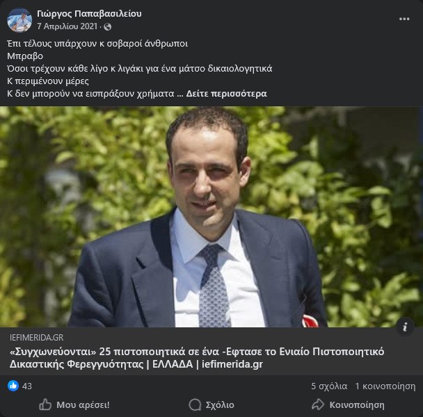 «Εξαιρετικός Μητσοτάκης», έγραφε μεταξύ άλλων