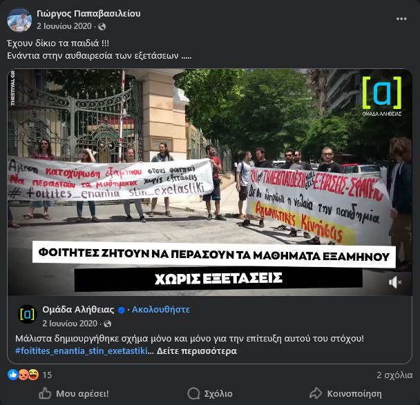 Η ανάρτηση από την «Ομάδα Αλήθειας»
